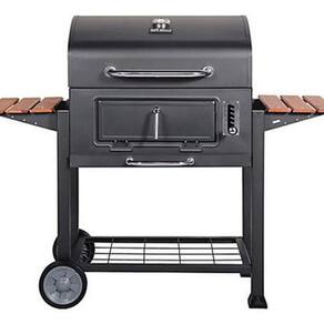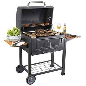 Churrasqueira a carvão móvel com mesa lateral em madeira, modelo Texas. Possui profundidade de 79cm, 2 bandejas, rodas para fácil deslocamento e área de cocção de 71,5x46,5cm. Feita em ferro preto pela marca Mr Beef, possui nível de cozimento ajustável em 2 opções. A estrutura é resistente e possui cor preta, com mesa de apoio e gancho para acessórios. Ideal para uso externo doméstico, funcionando com carvão. Mede 145cm de altura, 154cm de largura e 79cm de comprimento. Importada, vem embalada com dimensões de 84x59x43cm e pesando 39kg. Perfeita para reunir a família e amigos para saborear deliciosos churrascos ao ar livre. Marca: Não Informado Ean: 5063603029163