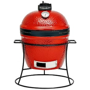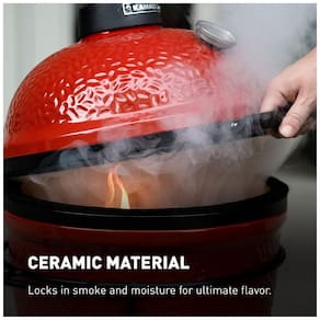 Grelha de cerâmica premium de com suporte de ferro fundido Invólucro de paredes espessas e resistente ao calor que bloqueia a fumaça e a umidade em qualquer temperatura Saída de ar de ferro fundido para controle de temperatura Grelha de cozimento em aço inoxidável 304 Medidor de temperatura embutido Marca: Não Informado