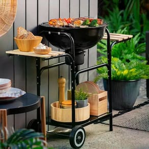 CARACTERÍSTICAS: Churrasqueira Redonda a Carvão com Duas Bandejas, uma Grelha. Possui Tampa.