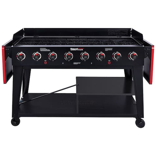 Grelha para eventos grandes As grelhas de cozimento com fio de aço esmaltado em porcelana possuem 62. espaço de cozimento e 8 queimadores de aço inoxidável fornecem 104.000 BTU de potência de cozimento 13.000 BTU cada. Sistemas duplos Dois sistemas de suporte de gás criam zonas de grelhar controladas individualmente. Dois sistemas de ignição eletrônica individuais oferecem faísca confiável a cada impulso. Dois sistemas de gerenciamento de graxa tornam a limpeza mais simples e fácil. Projetos dobráveis o defletor de vento dobrável oferece defesa completa contra o vento e respingos de óleo, e as mesas laterais dobráveis com trilhos de utensílios oferecem um amplo espaço de trabalho de preparação de alimentos. Ótimo zenamento as prateleiras inferiores de ripas de camada dupla são projetadas para zenamento conveniente de pequenas ferramentas e acessórios grandes Marca: Não Informado