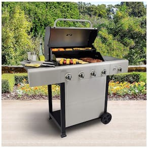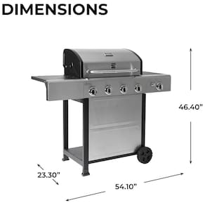 SAÍDA DO QUEIMADOR 4 queimadores principais em tubo de aço inoxidável. Cada um carrega 10.000 BTUs. Inclui um queimador lateral de 13.000 BTU. O BTU total é 53.000. DURÁVEL As superfícies de aço inoxidável e revestidas a pó e as prateleiras laterais fazem com que esta grelha dure mesmo nas condições mais difíceis. Os 4 queimadores principais são feitos de tubo de aço inoxidável para uma resistência duradoura. FÁCIL DE INICIAR A ignição eletrônica torna a partida desta grelha tão fácil quanto apertar um botão com sistema de ignição individualizado. FÁCIL DE USAR O tanque de propano está convenientemente localizado com uma parte traseira aberta, tornando a troca de garrafas uma tarefa simples Marca: Não Informado