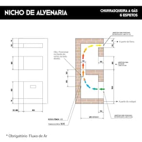 DESIGN E ESTRUTURA: - Painel frontal MODULAR em aço inox AISI 304 escovado; - Porta frontal de vidro temperado com sistema telescópico; - Grade interna de apoio; - Válvula de segurança contra vazamento de gás; - Bandeja coletora de gordura com frente de inox; - Controlador de queimador individual; - 06 Espetos rotativos com cabo térmico, sendo 05 simples e 01 triplo; - Lâmpada interna; - Acendedor automático de fogo.