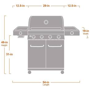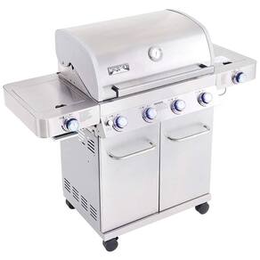 72.000 BTUS COOKING POWER Quatro queimadores principais e um queimador lateral e um queimador lateral com um total de 72.000 BTUs fornecem calor poderoso e excelente experiência de grelhar. GABINETE DE ZENAMENTO GRANDE Fácil de zenar seu tanque de LP, além de oferecer espaço suficiente para acessórios para grelhar. LUZES LED Botões de controle de LED para maior visibilidade à noite, adicionando um ambiente incrível à sua experiência geral de cozimento. IGNIÇÃO ELETRÔNICA Sistema de ignição eletrônica para partidas fáceis do queimador. DOMADORES DE CHAMAS DE AÇO INOXIDÁVEL Os domadores de chamas inoxidáveis garantem um calor uniforme, proporcionando ótimos sabores Marca: Não Informado