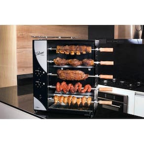 Deixe seu churrasco do final de semana ainda mais gostoso com a ajuda da Churrasqueira a Gás Vulcano Cattiva. Por meio do sistema de rotação de espetos, você ganha tempo, agilidade e conforto. A Cattiva possui acendimento manual e tem capacidade para assar 1,5 kg por espeto. Assim, você pode fazer até 7,5 kg de uma só vez, usando os 5 espetos rotativos. Por meio do vidro e painéis retos, a limpeza é simplificada. Também conta com bandeja coletora de gordura. Além disso, a Churrasqueira Vulcano Cattiva tem estrutura em aço-carbono revestida com pintura epóxi, o que gera proteção total contra a ação do tempo.