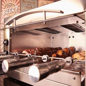 Churrasqueira a gás de bancada 4 espetos com porta de vidro gn 127v stand Versátil e prática, a churrasqueira a gás titan stand oferece assados sem fumaça e com alto desempenho. Conta com 4 espetos rotativos 3 simples e 1 triplo , queimadores infravermelhos, controle individual de chama, acendimento automático e estrutura em inox 304. Possui porta frontal de vidro temperado com abertura telescópica, bandeja coletora de gordura, grade interna e capacidade para até 6,8 kg de carne. Ideal para carnes, peixes, legumes e até pizzas. Atenção: escolha o tipo de gás correto Antes de finalizar a compra, verifique qual o tipo de gás disponível no seu imóvel: - glp gás de botijão ou cilindro : é o famoso gás de cozinha, vendido em botijões ex: p45 . Ideal para casas com abastecimento por botijão ou cilindro. - gn gás natural ou canalizado : conhecido como gás de rua, é fornecido por encanamento, comum em apartamentos e comércios. - escolher a versão errada pode causar falha na instalação e perda da . Desempenho e especificações: - queimadores infravermelhos: 2 unidades; - consumo de gás por queimador: 190 g/h; - consumo total de gás: 380 g/h; - tipo de gás: gás natural; - pressão de funcionamento: gás natural 2,2 kpa; - motorredutor elétrico: tensão 127v, potência 28w; - giro do espeto: 6rpm; - consumo elétrico: 0,06 kw/h; - tensão: 127v; - frequência: 60hz; - espetos suportam 1,7 kg. Design e estrutura: - produto fabricado em inox 304 - porta frontal de vidro temperado com sistema telescópico; - estrutura externa em aço inox aisi 304 escovado; - estrutura interna em alumínio; - bandeja coletora de gordura em alumínio com frente de inox; - 04 espetos rotativos com cabo térmico - sendo 03 simples e 01 triplo; - controlador de queimador individual. Medidas: - dimensões do produto axlxp : 40 x 58 x 54 cm; - dimensões da embalagem axlxp : 53 x 68 x 68 cm; - peso líquido: 22,3 kg peso bruto: 26 kg. Acessórios inclusos: - bandeja coletora de gordura com frente de inox; - grade interna de apoio; - 4 espetos rotativos 3 simples e 1 triplo . Informações adicionais: As entregas são feitas em horário comercial e a montagem fica por conta do comprador. As imagens são meramente ilustrativas podendo apresentar itens que não compõe o produto. As cores do produto podem variar de acordo com o monitor ou percepção visual. Marca: Não Informado
