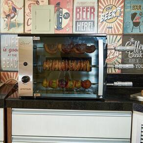 Churrasqueira a gás de bancada vertical 3 espetos gn 127v stand Prática, compacta e eficiente, a churrasqueira a gás de bancada vertical titan stand é ideal para quem busca churrascos saborosos sem fumaça. Possui 3 espetos rotativos 2 simples e 1 triplo , queimador infravermelho com controle individual, acendimento manual e porta frontal de vidro temperado com abertura prática. Conta ainda com estrutura resistente em aço carbono com pintura epóxi, bandeja coletora de gordura e painel curvo em inox. Perfeita para carnes, peixes e legumes, com capacidade total para até 5,1 kg. Atenção: escolha o tipo de gás correto Antes de finalizar a compra, verifique qual o tipo de gás disponível no seu imóvel: - glp gás de botijão ou cilindro : é o famoso gás de cozinha, vendido em botijões ex: p45 . Ideal para casas com abastecimento por botijão ou cilindro. - gn gás natural ou canalizado : conhecido como gás de rua, é fornecido por encanamento, comum em apartamentos e comércios. - escolher a versão errada pode causar falha na instalação e perda da . Desempenho e especificações: - queimador infravermelho: 1 unidade; - consumo de gás por queimador: 190 g/h; - consumo total de gás: 190 g/h; - tipo de gás: gás natural; - pressão de funcionamento: gás natural 2,2 kpa; - motorredutor elétrico: 12v, potência 28w; - giro do espeto: 6rpm; - consumo elétrico: 0,06 kw/h; - tensão: 127v; - frequência: 60hz; - espetos suportam 1,7 kg. Design e estrutura: - estrutura externa em aço carbono com pintura epóxi em preto fosco; - painel frontal curvo em inox; - coifa interna esmaltada; - bandeja coletora de gordura em alumínio com frente de inox; - porta frontal de vidro temperado; - 03 espetos rotativos com cabo de madeira preto - sendo 02 simples e 01 triplo; - controlador de queimador individual. Medidas: - dimensões do produto axlxp : 41 x 55 x 31 cm; - dimensões da embalagem axlxp : 48 x 62 x 41 cm; - peso líquido: 15,5 kg peso bruto: 18 kg. Acessórios inclusos: - bandeja coletora de gordura com frente de inox; - 3 espetos rotativos 2 simples e 1 triplo . Informações adicionais: As entregas são feitas em horário comercial e a montagem fica por conta do comprador. As imagens são meramente ilustrativas podendo apresentar itens que não compõe o produto. As cores do produto podem variar de acordo com o monitor ou percepção visual. Marca: Não Informado