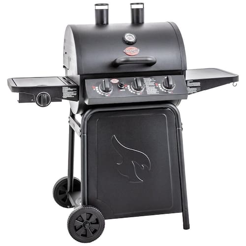 A churrasqueira a gás Char-Griller E3001 Grillin Pro oferece um amplo espaço de 438 polegadas quadradas para grelhados a gás na superfície principal e 192 polegadas quadradas na prateleira de aquecimento. Três tubos queimadores de aço inoxidável geram um total de 40.800 BTUs, com um queimador lateral de 12.000 BTUs. Construída em aço resistente, possui grades de ferro fundido esmaltadas, dois dutos para aquecimento uniforme, termômetro de aço inoxidável, cabo da tampa Stay Cool e acendedor eletrônico em cada queimador. Esta churrasqueira a gás premium de 40.800 BTU com 3 queimadores e queimador lateral de 12.000 BTU torna o churrasco excepcional em casa fácil. Três queimadores com reguladores independentes proporcionam calor contínuo e equilibrado em toda a área de grelhados. Com uma grande área de cozimento de 630 polegadas quadradas, oferece um ótimo sabor e aroma de churrasco, com 438 polegadas quadradas para grelhados e 192 polegadas quadradas na prateleira de aquecimento. Sua estrutura durável em aço tubular, com dois dutos de fumaça para melhor ventilação, e termômetro de churrasco em aço inoxidável. Possui grades de cozimento espessas em ferro fundido esmaltado para alta retenção de calor, prateleira de aquecimento, rodas grandes para fácil transporte e área de trabalho lateral com ganchos para utensílios de churrasco. O design elegante da churrasqueira a gás Char-Griller em preto estilo barril com dutos de fumaça é uma adição bem-vinda a qualquer quintal. Fácil de limpar, com bandeja de gordura removível após o churrasco. Possui acendedores eletrônicos para cada queimador, garantindo que sua churrasqueira a gás inicie facilmente com o toque de um botão. Acessórios incluem a capa para churrasqueira Char-Griller 3055 para 3 queimadores e o raspador de grelha para churrasco 9305. DIMENSÕES: 122cm x 71cm x 122cm, 40kg.
