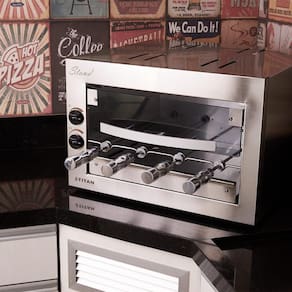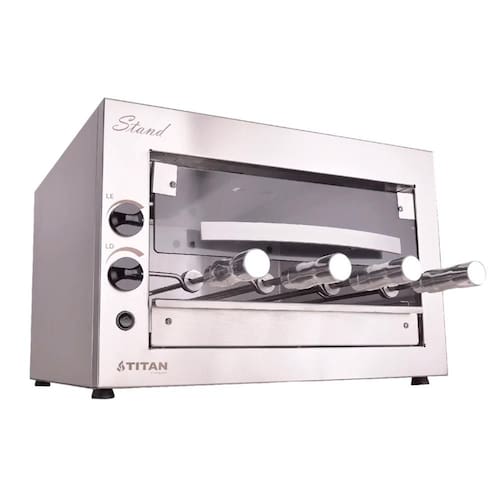 A Churrasqueira a Gás de Bancada Titan Stand 4 Espetos Giratórios 220V é a escolha perfeita para quem deseja um espaço gourmet moderno e prático. Ideal para assar carnes, legumes, pizzas e garantir um saboroso churrasco, esta churrasqueira conta com um sistema rotativo e queimadores infravermelhos potentes. Silenciosa e sem produção de fumaça, ela proporciona uma experiência de cozimento agradável e livre de incômodos.