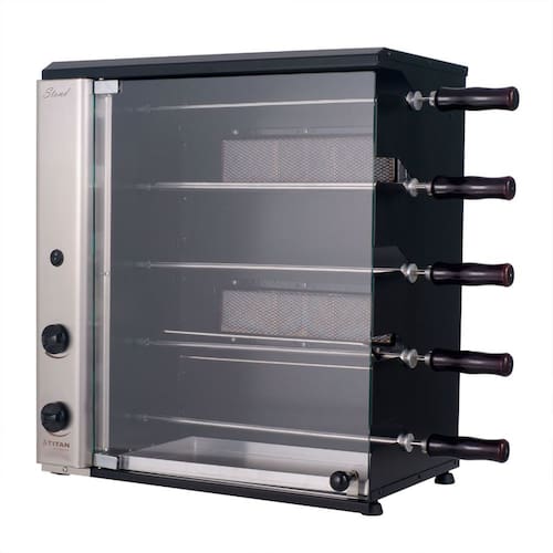 Prática, compacta e eficiente, a Churrasqueira a Gás de Bancada Vertical Titan Stand é ideal para quem busca churrascos saborosos sem fumaça. Possui 5 espetos rotativos (4 simples e 1 triplo), queimador infravermelho com controle individual, acendimento manual e porta frontal de vidro temperado com abertura prática. Conta ainda com estrutura resistente em aço carbono com pintura epóxi, bandeja coletora de gordura e painel curvo em inox. Perfeita para carnes, peixes e legumes, com capacidade total para até 8,5 kg. ATENÇÃO: ESCOLHA O TIPO DE GÁS CORRETO Antes de finalizar a compra, verifique qual o tipo de gás disponível no seu imóvel: - GLP (Gás de Botijão ou Cilindro): é o famoso gás de cozinha, vendido em botijões (ex: P45). Ideal para casas com abastecimento por botijão ou cilindro. - GN (Gás Natural ou Canalizado): conhecido como gás de rua, é fornecido por encanamento, comum em apartamentos e comércios. - Escolher a versão errada pode causar falha na instalação e perda da garantia. Em caso de dúvidas, consulte a nossa equipe antes de finalizar a compra. DESEMPENHO E ESPECIFICAÇÕES: - Queimadore infravermelhos: 2 unidades; - Consumo de gás por queimador: 190 g/h; - Consumo total de gás: 380 g/h; - Tipo de gás: GLP ou Gás Natural; - Pressão de funcionamento: Gás: GLP 2,8 a 3,5 KPa; - Motorredutor elétrico: 12V, potência 28W; - Giro do Espeto: 6RPM; - Consumo elétrico: 0,06 kW/h; - Tensão: 127V; - Frequência: 60Hz; - Espetos suportam 1,7 kg. DESIGN E ESTRUTURA: - Estrutura externa em aço carbono com pintura epóxi em preto fosco; - Painel frontal curvo em inox; - Coifa interna esmaltada; - Bandeja coletora de gordura em alumínio com frente de inox; - Porta frontal de vidro temperado; - 05 Espetos rotativos com cabo de madeira PRETO – Sendo 04 simples e 01 triplo; - Controlador de queimador individual. MEDIDAS: - Dimensões do produto (AxLxP): 64 x 55 x 31 cm; - Dimensões da embalagem (AxLxP): 73 x 62 x 41 cm; - Peso líquido: 20,5 kg | Peso bruto: 23 kg. ACESSÓRIOS INCLUSOS: - Bandeja coletora de gordura com frente de inox; - 5 espetos rotativos (4 simples e 1 triplo). INFORMAÇÕES ADICIONAIS: *As entregas são feitas em horário comercial e a montagem fica por conta do comprador. **As imagens são meramente ilustrativas podendo apresentar itens que não compõe o produto. As cores do produto podem variar de acordo com o monitor ou percepção visual. Marca: Não Informado