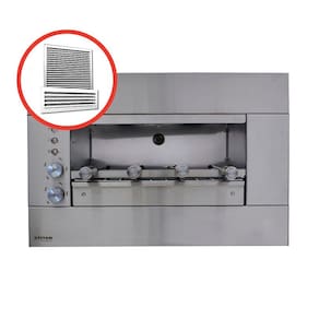Churrasqueira a gás de embutir com 4 espetos em nicho de alvenaria. Seu espaço gourmet mais moderno e prático. Silenciosa e não produz fumaça, o que faz o seu churrasco muito mais agradável.