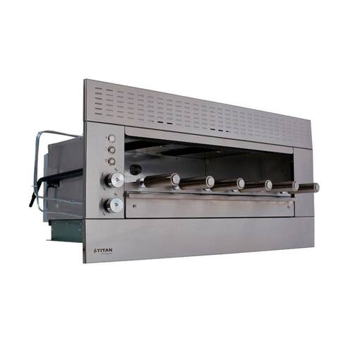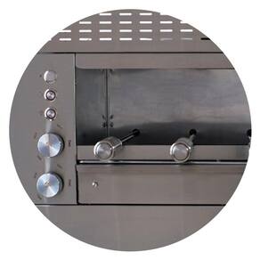Churrasqueira a gás de embutir com 6 espetos em nicho de alvenaria. Seu espaço gourmet mais moderno e prático. Silenciosa e não produz fumaça, o que faz o seu churrasco muito mais agradável.