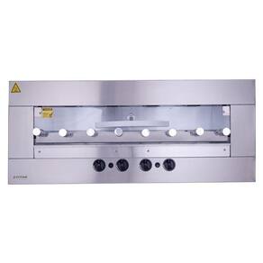 Churrasqueira a gás de embutir com 8 espetos, ideal para assar churrascos e pizzas. Possui amplo espaço interno, com 8 posições para espetos. Com desenho requintado dará um toque especial em sua área Gourmet. Não produz fumaça, o que faz o seu churrasco muito mais agradável.