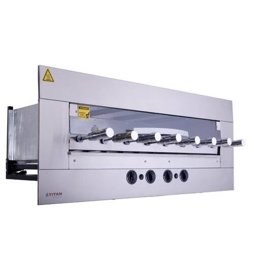 Com uma capacidade total de 13,6 kg de carnes, esta churrasqueira conta com um giro do espeto de 6 RPM. Funciona com gás GLP ou gás natural, com uma pressão de funcionamento de 2,8 a 3,5 KPa, e o uso do Kit Venezianas para ventilação do nicho é indispensável.