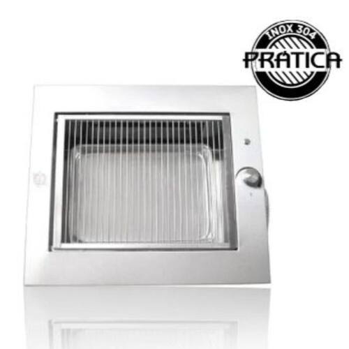 A Churrasqueira de Embutir da Prática dispensa qualquer tipo de exaustor, já que não produz nada de fumaça. Sua caixa refratária em chapa dupla e térmica com revestimento e isolamento especial, garante excelente proteção térmica para os seus armários. A churrasqueira a gás foi projetada para valorizar sua área de lazer e gourmet. É um produto de fácil instalação e se adapta em qualquer ambiente. Perfeita para móveis. Instalada de forma rápida e econômica, bastando sobrepor a caixa térmica em nicho feito na pedra da bancada, dispensando alvenaria, revestimentos e mão de obra. Características: - Acendimento elétrico dos queimadores, através de usina eletrônica; - Não produz fumaça; - Excelente proteção térmica para armários; - Moldura e parte interna em aço inox 304; - 2 queimadores infravermelho; - Acendedor elétrico; - Bandeja coletora de gordura; - Chega em aproximadamente 350 graus; - Fios internos anti-chama; - Botão de regulagem em inox. Especificações técnicas: Marca: Churrasqueiras Prática Modelo: Diamante de embutir Medida moldura: 53 cm x 60 cm Medida grelha: 35 cm x 45 cm Nicho corte da pedra: 48,5 cm x 54,5 cm Altura: 20 cm Marca: Churrasqueiras Pratica