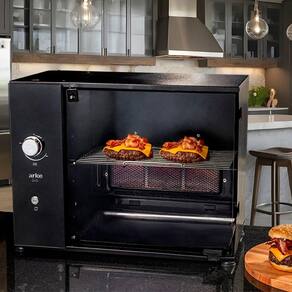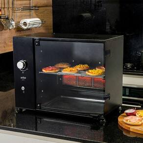 A churrasqueira conta com uma grelha em aço inox AISI 304, permitindo grelhar carnes, legumes e outros alimentos. O produto é altamente funcional e tem um painel de vidro e botão de LED, proporcionando maior elegância e sofisticação.