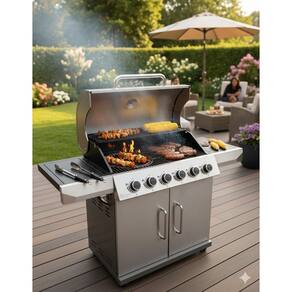 Churrasqueira a gás com 7 queimadores, sendo 5 queimadores em aço inox e 1 selador em formato U, mais 1 queimador lateral. Possui ignição eletrônica, grelha em ferro fundido com ampla área de cozimento, estrutura em aço inox, aquecimento rápido e uniforme. Ideal para áreas gourmet, varandas e áreas externas.Vendido por Home Living e entregue por Casas Bahia
