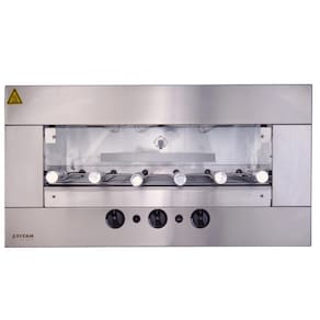 Este modelo conta com um painel frontal modular em aço inox AISI 304 escovado, que oferece durabilidade e um visual elegante. A bandeja coletora de gordura com frente de inox e a grade interna de apoio garantem praticidade durante o uso. Além disso, o controlador de queimador individual e a válvula de segurança contra vazamento de gás asseguram segurança e eficiência. A porta frontal de vidro temperado com sistema telescópico permite um acesso fácil ao interior da churrasqueira. Com 06 espetos rotativos, sendo 05 simples e 01 triplo, cada espeto suporta até 1,7 kg de carne, com uma capacidade total de 10,2 kg. O acendedor automático de fogo e a lâmpada interna tornam o uso ainda mais fácil e conveniente.