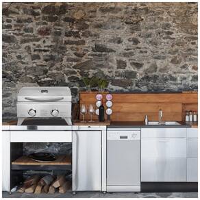 Easy Clean o grelhador é fabricado em aço inoxidável, incluindo a grelha para grelhar. Isso torna a limpeza consideravelmente mais fácil. Bandeja de gordura removível segura pingos de comida. Ignição Elétrica Fácil de acender, basta segurar o botão ao girar, ouvir um clique e o acendedor acende um jato de gás que acende o queimador. Cada queimador tem um botão de controle separado, para que você possa usar um ou dois de cada vez. Dois Queimadores a opção de usar apenas um queimador, como normalmente grelhar para dois, é uma vantagem quando você faz churrasco ao ar livre. O queimador em forma de U fornece um calor máximo de 10.000 BTU e Marca: Não Informado