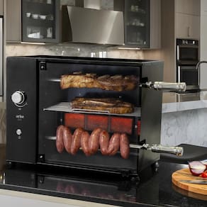 - Sistema de Rotação de Espetos, permite assar de forma homogênea todos os tipos de carne