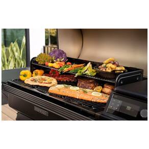 Churrasqueira a pellet de madeira com controle por App e WI-FI. Tecnologia Smart Combustion e construção totalmente isolada para temperaturas precisas. Versátil para grelhar, fumar, assar, refogar e fazer churrasco. Controle de temperatura de precisão (70 a 260ºC). Trilho de acessórios PopAndLock e superfícies ModiFIRE para personalização.Vendido e entregue por Ecletiq