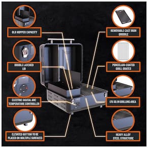 Desfrute do sabor autêntico do forno a lenha em qualquer lugar com a grelha de pellets de mesa Traeger Ranger. Seu design portátil permite que você leve a facilmente para festas ou escapadelas de fim de semana. Com controle preciso de temperatura, você poderá obter resultados consistentes e deliciosos. A grelha possui grelhas revestidas de porcelana fáceis de limpar, além de uma grelha de ferro fundido separada. A sonda de carne integrada ajuda a garantir que sua carne esteja sempre no ponto certo. Com o modo Keep Warm, você poderá manter seus alimentos quentes até que esteja pronto para servir. A grelha também possui duas travas de tampa e uma área de 1135 cm2 para grelhar. O funil estendido de 3,63 quilos é uma ótima adição para quem deseja grelhar por mais tempo sem precisar recarregar os pellets.