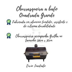 Itens inclusos na compra: - 1 Churrasqueira A Bafo Quadrada Em Alumínio - 1 Grelha - 1 Suporte pés