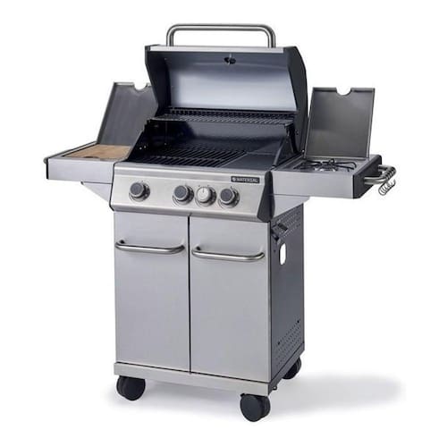 Uma churrasqueira a gás com 3 queimadores + 1 queimador lateral, 10,5 kW + 3 kW. Ideal para cozinhar para até 8 pessoas. Fácil de usar: fácil ignição com uma mão. Grelhas e chapa de ferro fundido esmaltado: bom nível de inércia, distribuição uniforme de calor. Cozinha múltipla: grelhador, grelha, tampa para cozinhar no forno e um queimador lateral. Ergonômico e prático: termômetro, suporte para toalha de papel e abridor de garrafas incluídos. Espaço de armazenamento para a garrafa de gás e utensílios de cozinha. Luz LED para monitorar a cozinha, mesmo após o pôr do sol - Fácil de limpar: - Lareira de esmalte muito elegante - Bandeja de gotejamento acessível a partir da frente e adequada para recipientes de alumínio - Fácil de mover: -4 rodas rotativas - Alças grandes - Construídas para durar por muito tempo: - Queimadores de aço inoxidável que resistem a efeitos climáticos e térmicos - Capa protetora incluída - Garantia de 5 anos