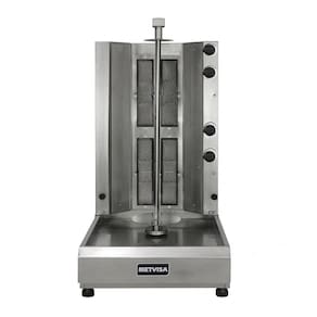 Assador em aço inox ideal para assar até 20 kg de carnes em peças inteiras ou em camadas. Possui espeto rotativo elétrico, coletor de gordura, 01 espátula inox e 04 queimadores infravermelhos a gás.