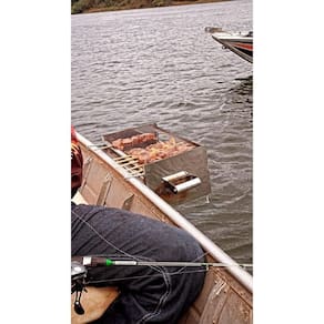 Agora seu churrasco fica mais completo e sem dúvida mais saborosa, ao nível das melhores churrascarias do brasil. Prenda o suporte da churrasqueira na lateral do barco. Acenda o carvão. Prepare a carne, tempere e relaxe , na grelha. Em poucos minutos terá um churrasco suculento.