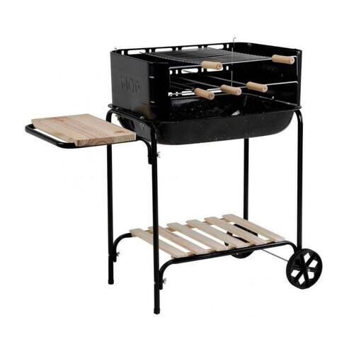 Um bom churrasco é a melhor pedida para uma confraternização, não é mesmo? Foi pensando nisso que a Mor desenvolveu a Churrasqueira Bonanza. Prática de montar, é perfeita para a reunião com a família e os amigos no parque, em casa, na praia ou onde preferir. Com estrutura em chapa de aço esmaltado, pés em tubo de aço, acabamento em pintura preta à base de água, grade para utensílios, tábua para churrasco e rodas para facilitar o transporte, ela é perfeita para todos os tipos de churrasqueiros, do mais requintado até os churrasqueiros de fim de semana! Ela já chega para você equipada com uma grelha com cabo de madeira, dois espetos simples de 58cm e um espeto duplo de 58cm, ou seja, basta comprar seu corte de carne favorito!