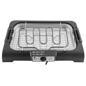 Churrasqueira elétrica para uso interno com grelha em aço inox de 45 cm com 2 opções de altura, seletor de temperatura, reservatório de água de 1,2L e coletor de gordura removível. Possui pés antiderrapantes.Infelizmente não temos estoque do produto que você está procurando no momento.