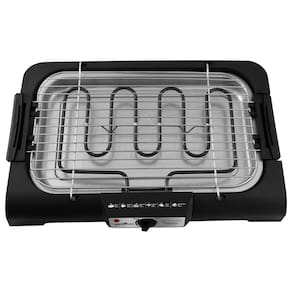 Churrasqueira elétrica com controle de temperatura, grelha removível com alça, base de apoio com grade, 2 níveis de altura para grelha, bandeja para água com capacidade de 1,2L que funciona como coletora de resíduos.Vendido e entregue por Britânia Oficial