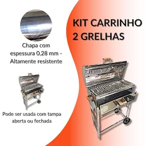 Churrasqueira carrinho n2 kit 2 grelhas ---------colocamos seu produto na expedição em até 24h úteis--------- ---------garantimos sua satisfação ou devolvemos o seu dinheiro--------- Churrasqueira carrinho kit com 2 grelhas - uma grelha parrilla argentina e uma grelha tela moeda Uma churrasqueira com design sofisticado e . A carne ficará mais macia e suculenta, com o potente sistema a bafo. Possui grelha parrilla, que deixa a carne mais saborosa e escorre a gordura para o coletor, produzindo menor quantidade de fumaça O coletor é removível, feito em inox, é facil de limpar Com gaveta removível, você pode limpar as cinzas facilmente, sem precisar fazer muito esforço. O sistema da churrasqueira é projetado para aproveitar ao máximo o carvão, garantindo máxima econômia e Um preparo perfeito. A churrasqueira é resistente a chuva e sol, por ser feita em aço inox 430, sendo resistente a ferrugem e sendo resistente a choques de intensidade média. Além disso, as dimensões da grelha permitem que você tenha espaço à vontade para preparar um delicioso churrasco Características Grelha útil parrilla: 57 x 24 cm Grelha útil moeda: 54 x 22 cm Altura grelha-chão: 81 cm Distância grelha-brasa: 10 cm Dimensões da gaveta: Altura 8,5 cm Largura:49 cm Comprimento:26 cm Altura sem os pés: 36 cm Altura com os pés total : 91 cm Largura total: 69 cm Comprimento total: 36 cm Material da churrasqueira: aço inox 430 Material da grelha: aço inox 430 Grelha removível Grelha modelo parrilla Churrasqueira com rodinhas. Pés removíveis. Você pode usar com ou sem os pés. Sem os pés você pode apoiar em mesas e bancadas 1 compra corresponde a 1 uma churrasqueira com uma grelha parrilla e uma grelha tela moeda. Sistema: a bafo. Imagens meramente ilustrativas Marca: Não Informado