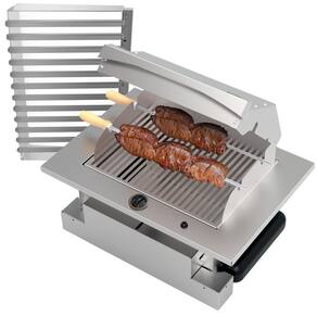 Esta churrasqueira é a revolução do churrasco, sem fumaça, sem sujeira e com um sabor ainda melhor que o churrasco a carvão. Chega de apanhar para acender o fogo, com esta churrasqueira você apenas precisa apertar um botão e pronto, o fogo já está acesso. Esta churrasqueira acompanha tampa removível, proteção quebra-vento, grelha plana, grelha argentina e espetos. Enviamos ela completa e pronta para o seu churrasco acontecer, enquanto a carne deixamos para você.