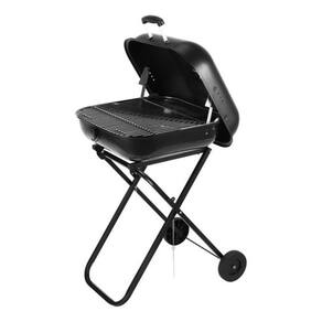 Churrasqueira Dobrável Móvel Bafo Carvão Carrinho - Preto