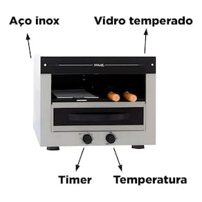 🔸 Potência: 2000W 🔸 Tensão: 220V 🔸 Espetos: 3 rotativos + 2 fixos em aço inox 🔸 Bandeja coletora de resíduos: Sim 🔸 Prateleira deslizante: Sim 🔸 Luz interna: Sim 🔸 Timer: 120 minutos com desligamento automático 🔸 Dimensões: 50 cm (L) x 41 cm (A) x 42 cm (P) 🔸 Peso: 11 kg 🔸 Material: Aço kromanox + vidro temperado