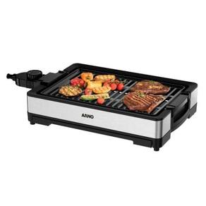 Churrasqueira elétrica com 1000W de potência, controle de temperatura até 230°C, bandeja coletora de água, revestimento antiaderente e design em inox.Infelizmente não temos estoque do produto que você está procurando no momento.