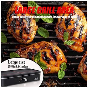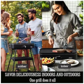 DESEMPENHO INIGUALÁVEL: Com um potente elemento de aquecimento de 1800W, nossa churrasqueira elétrica garante aquecimento rápido e uniforme para refeições perfeitamente grelhadas toda vez. Tenha controle total da temperatura de cozimento com ajustes personalizados, garantindo resultados de alta qualidade. Com área de cozimento generosa, ideal para festas e encontros familiares. Leve, compacta e portátil, perfeita para uso interno e externo. Fácil de limpar, com bandeja removível para gerenciamento de pingos eficiente e superfície antiaderente, promovendo uma culinária mais saudável e saborosa.