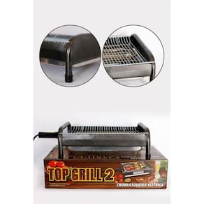 Ótimo para apartamentos e casas. Uma churrasqueira fácil de limpar, não produz fumaça e nem sujeira sendo muito fácil de lavar. Seu churrasco começa muito mais rápido e sem alterar em nada o sabor de sua carne. A Churrasqueira Elétrica Top Grill Light é toda craqueada, além de possuir suporte para grelha, contêm um recipiente para armazenar sua água.AtributosCom superfície antiaderente: SimCom depósito para gordura: SimCom porta de vidro: NãoMateriais da churrasqueira: AlumínioModelo detalhado: top grill 2É de embutir: SimCom sistema de rotação de espetos: NãoMateriais da área de cozimento: Aço inoxidávelvoltagem: 110 vAltura da churrasqueira: 14Com tampa: NãoLargura da churrasqueira: 29Com medidor de temperatura: NãoCom alças frias ao tato: NãoCom rodas: NãoTipo: GrillAlimentação: ElétricaVoltagem: 127 VEntidade: ChurrasqueiraCaracterísticas: Elétrico