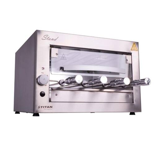 Churrasqueira elétrica de bancada com 4 espetos, ideal para assar churrascos e pizzas. Possui amplo espaço interno, com 4 posições para espetos. Com desenho requintado dará um toque especial em sua área Gourmet. Não produz fumaça, o que faz o seu churrasco muito mais agradável.