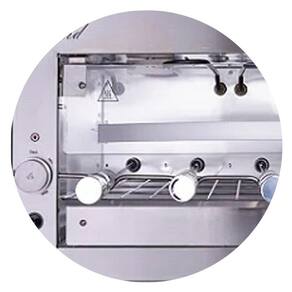 - Bandeja coletora de gordura em alumínio com frente de inox;