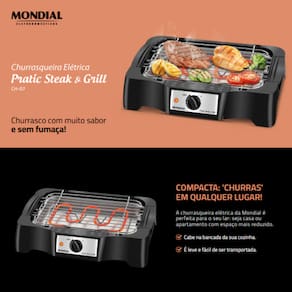 Churrasqueira elétrica portátil sem fumaça, ideal para uso em ambientes internos. Possui bandeja de água para evitar fumaça, controle de temperatura, grelha com altura regulável e grelha e resistência removíveis para facilitar a limpeza. Design compacto e potente., Churrasqueira elétrica portátil sem fumaça, ideal para uso em ambientes internos. Possui bandeja de água para evitar fumaça, controle de temperatura, grelha com altura regulável e grelha e resistência removíveis para facilitar a limpeza. Design compacto e potente.Vendido por CADACOISAS CAMEBA ARTIGOS IMP. E EXP. LTDA e entregue por Casas Bahia