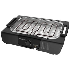 Churrasqueira elétrica para churrascos, petiscos e grelhados. Possui termostato contínuo, guia rápido com tempos de preparo, alças laterais, bandeja coletora de gordura, indicador do nível de água e ajuste de altura na grelha. Totalmente desmontável.Vendido e entregue por Olist Store