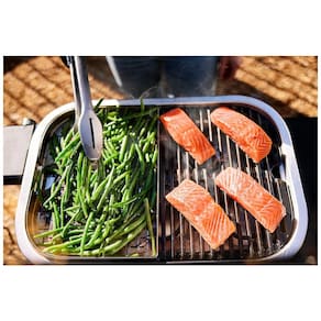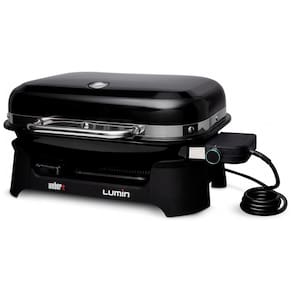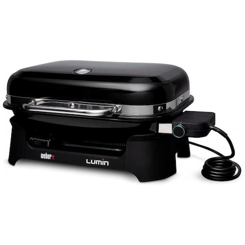 Churrasqueira elétrica grill Weber Lumin para até 8 porções, atinge altas temperaturas (acima de 315°C), possui configurações de cozimento variadas (dourar, defumar, cozinhar a vapor ou ferver), função de manter aquecido, e sistema de descongelamento a vapor.Vendido e entregue por Ecletiq