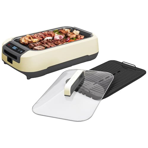 Transforme suas refeições em momentos especiais com a Churrasqueira Elétrica OVENTE. Diferente dos tipos de churrasqueiras tradicionais, as churrasqueiras elétricas são super convenientes, fáceis de limpar e aquecem a carne rapidamente sem produzir fumaça. Além de todos esses benefícios, este modelo é uma opção saudável, pois elimina cerca de 92% da fumaça. Prepare deliciosas refeições como panquecas, bacon, bifes e hambúrgueres com facilidade. Desfrute do sabor autêntico do churrasco sem fumaça e sem complicações, seja no verão ou no inverno. Aquece rapidamente e atinge temperaturas de 100°C a 230°C, oferecendo controle total sobre o cozimento. Com funções de grelha, chapa, assar e grelhar, prepare uma variedade de pratos sem esforço. As placas antiaderentes coletam a gordura em uma bandeja removível, garantindo alimentos mais saudáveis e saborosos. A limpeza é fácil, as peças removíveis podem ser lavadas à mão. Compacta para guardar.