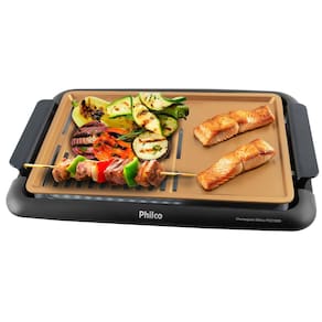 Prepare grelhados saborosos com a Churrasqueira Elétrica Gold PCQ1500D da Philco. Ideal para quem busca praticidade e segurança na cozinha.
