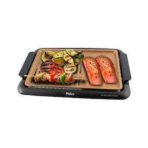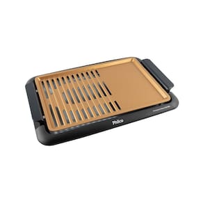 Churrasqueira elétrica com resistência blindada, chapa antiaderente, alças laterais com toque a frio, bandeja coletora para resíduos e base antiderrapante. Possui 5 níveis de temperatura e LED indicador de funcionamento. A superfície é composta por 60% grelha e 40% chapa lisa.Vendido e entregue por Lumienergy