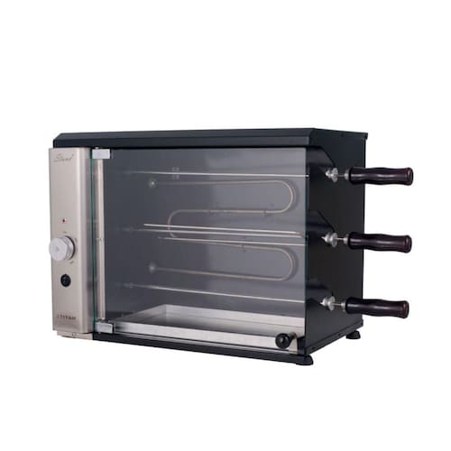 Churrasqueira Elétrica Vertical de Bancada 3 Espetos com Porta de Vidro Stand