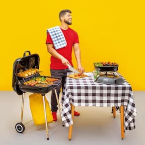 A praticidade estará presente no seu churrasco com a Churrasqueira a Bafo Barbacoa! Contando com rodinhas para facilitar o transporte, a Churrasqueira Barbacoa possui duas grelhas internas, sendo uma menor elevada para afastar os alimentos do fogo após estarem prontos. Produzida em aço esmaltado, sendo os pés e grades em aço cromado e detalhes da tampa em polipropileno, acompanham a churrasqueira dois acessórios para retirada das grelhas, que facilitam a limpeza, e regulador de ar na tampa, que auxilia na hora de assar os alimentos por igual. Garanta seus alimentos perfeitamente grelhados com a Churrasqueira a Bafo Barbacoa.