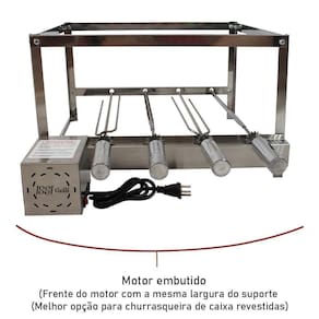 Agora seu churrasco fica mais completo e sem dúvida mais saborosa, ao nível das melhores churrascarias do Brasil. Tudo fica mais gostoso no espeto giratório, pois a carne fica mais suculenta e macia, com o giro constante do espeto ela não perde sua gordura e sumos, elevando a qualidade do assado.